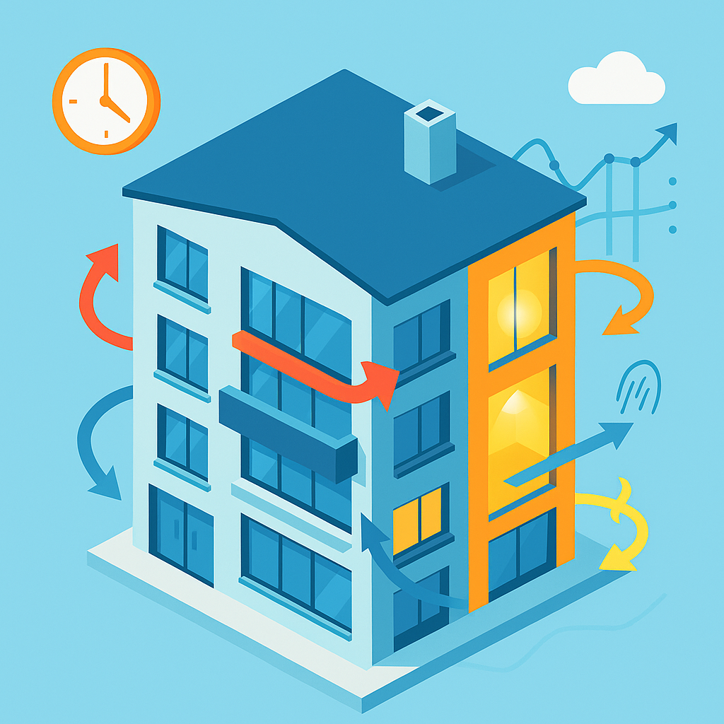 - variantes simples de envolventes/sistemas de edificios (bomba de calor, ventilación, protección solar),